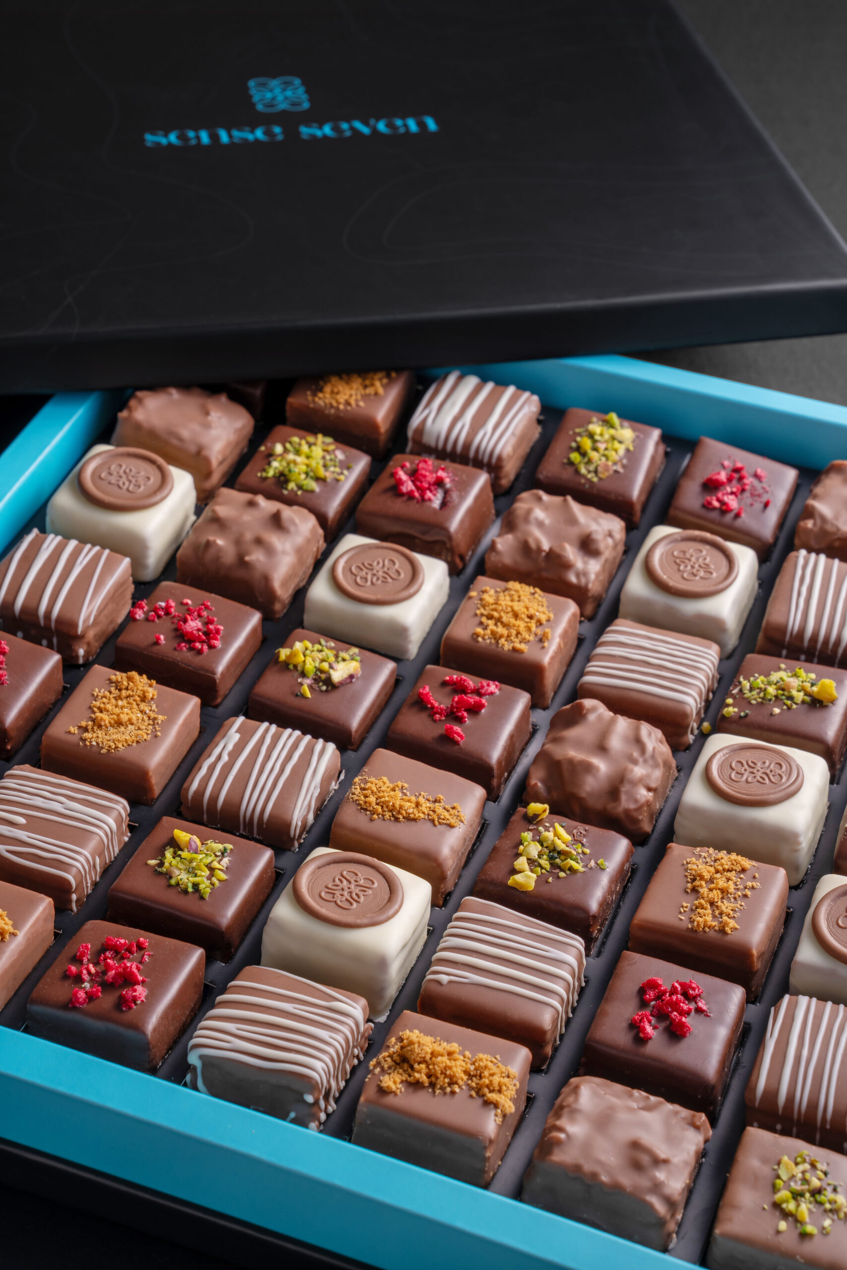 Ultimate Gifting Delight (96 pcs) A grand assortment of layered chocolates, perfect for gifting or sharing at special occasions. Flavors: Sicily, Lisbon, Casablanca, Amsterdam, San Francisco, Vienna